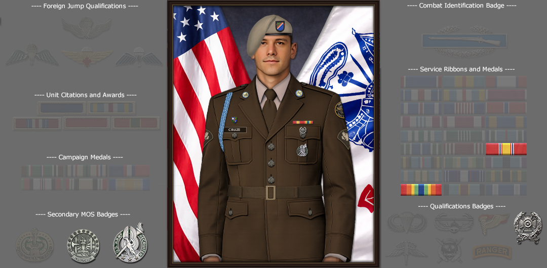 THIS IS TO CERTIFY THAT THE SECRETARY OF THE ARMY HAS REPOSED SPECIAL TRUST AND CONFIDENCE IN THE PATRIOTISM, VALOR, FIDELITY AND PROFESSIONAL EXCELLENCE OF Alex CruzeIN VIEW OF THESE QUALITIES AND THEIR DEMONSTRATED LEADERSHIP POTENTIAL AND DEDICATED SERVICE TO THE UNITED STATES ARMY AND TASK FORCE 28, THEY ARE THEREFOR ADVANCED TO THE RANK OF SPC |